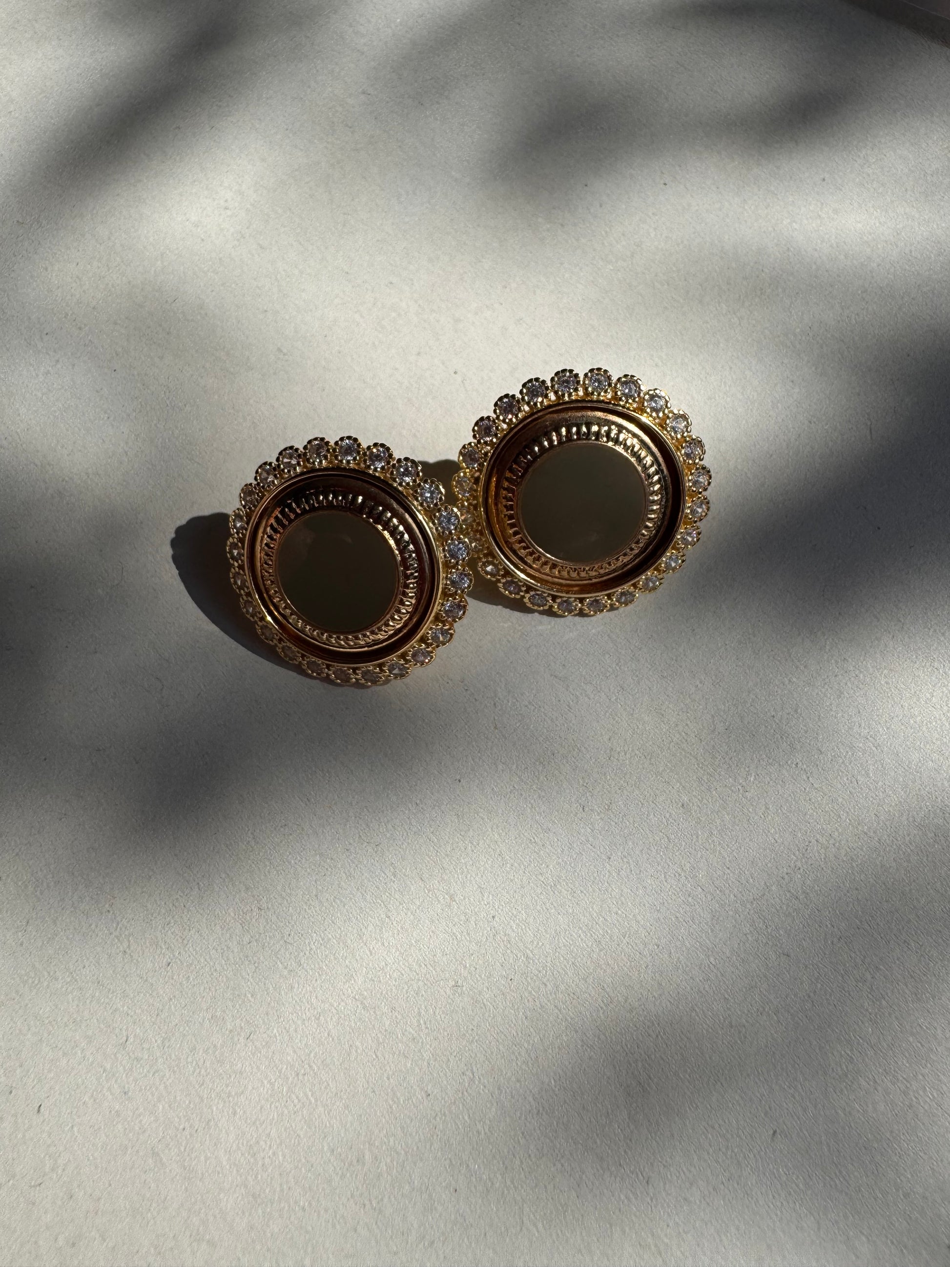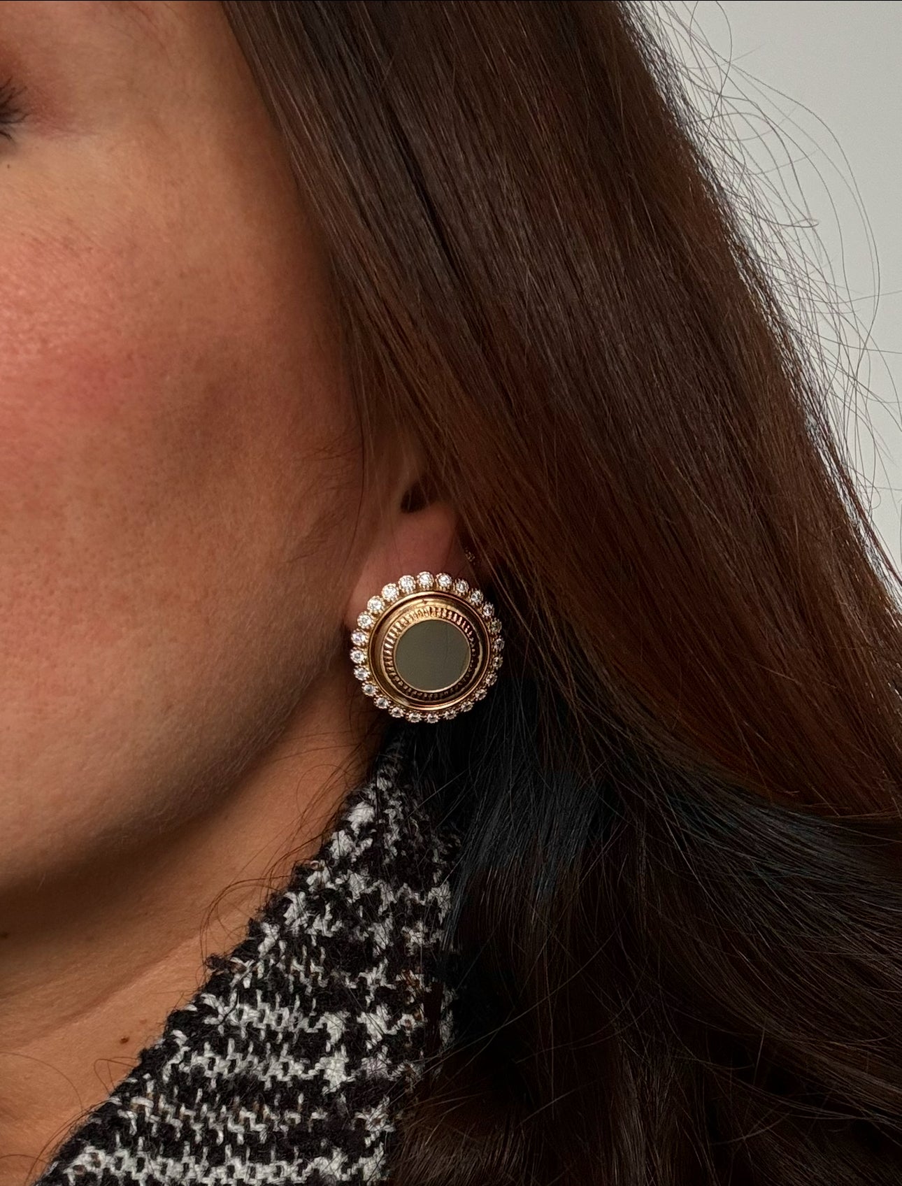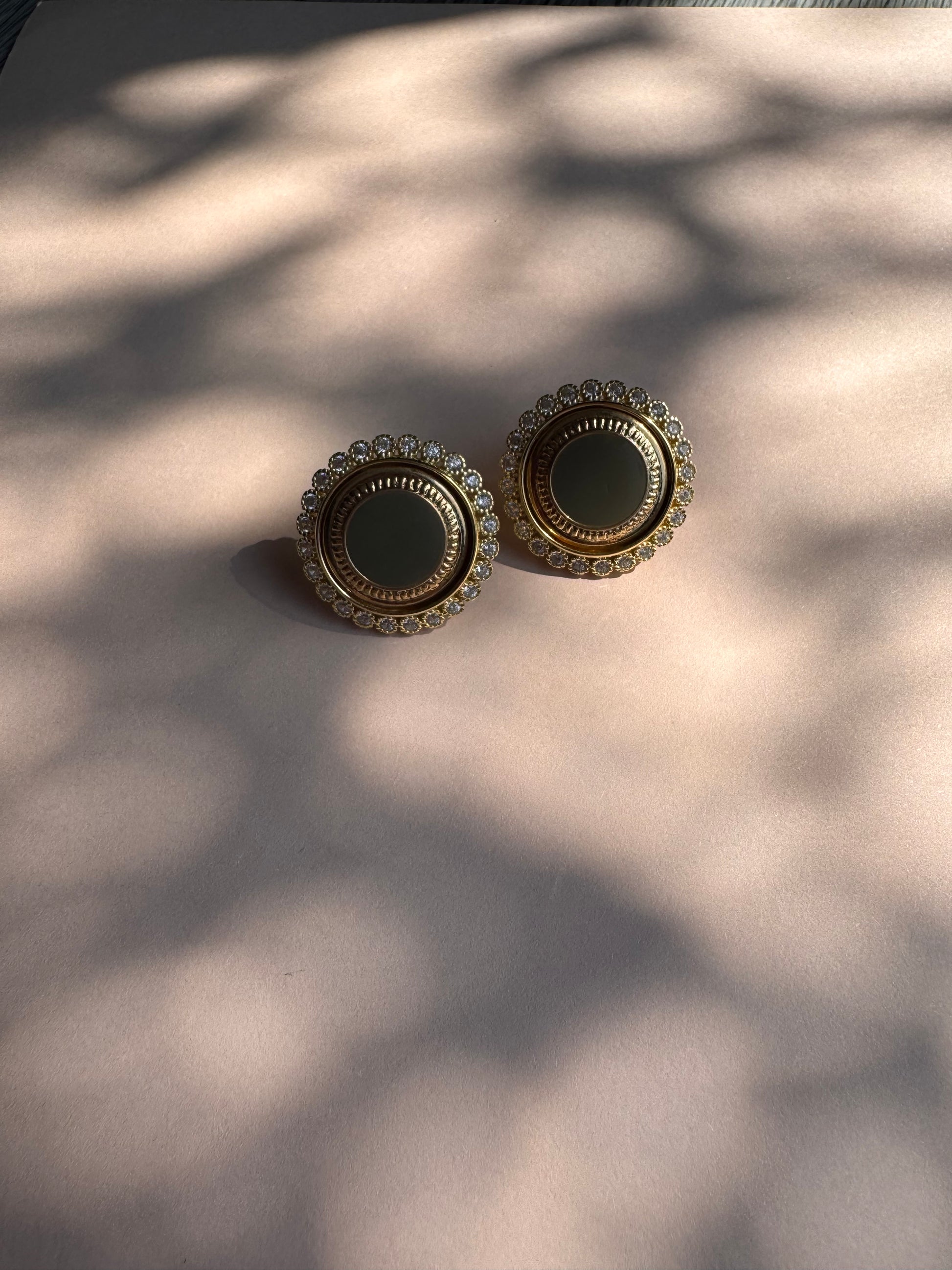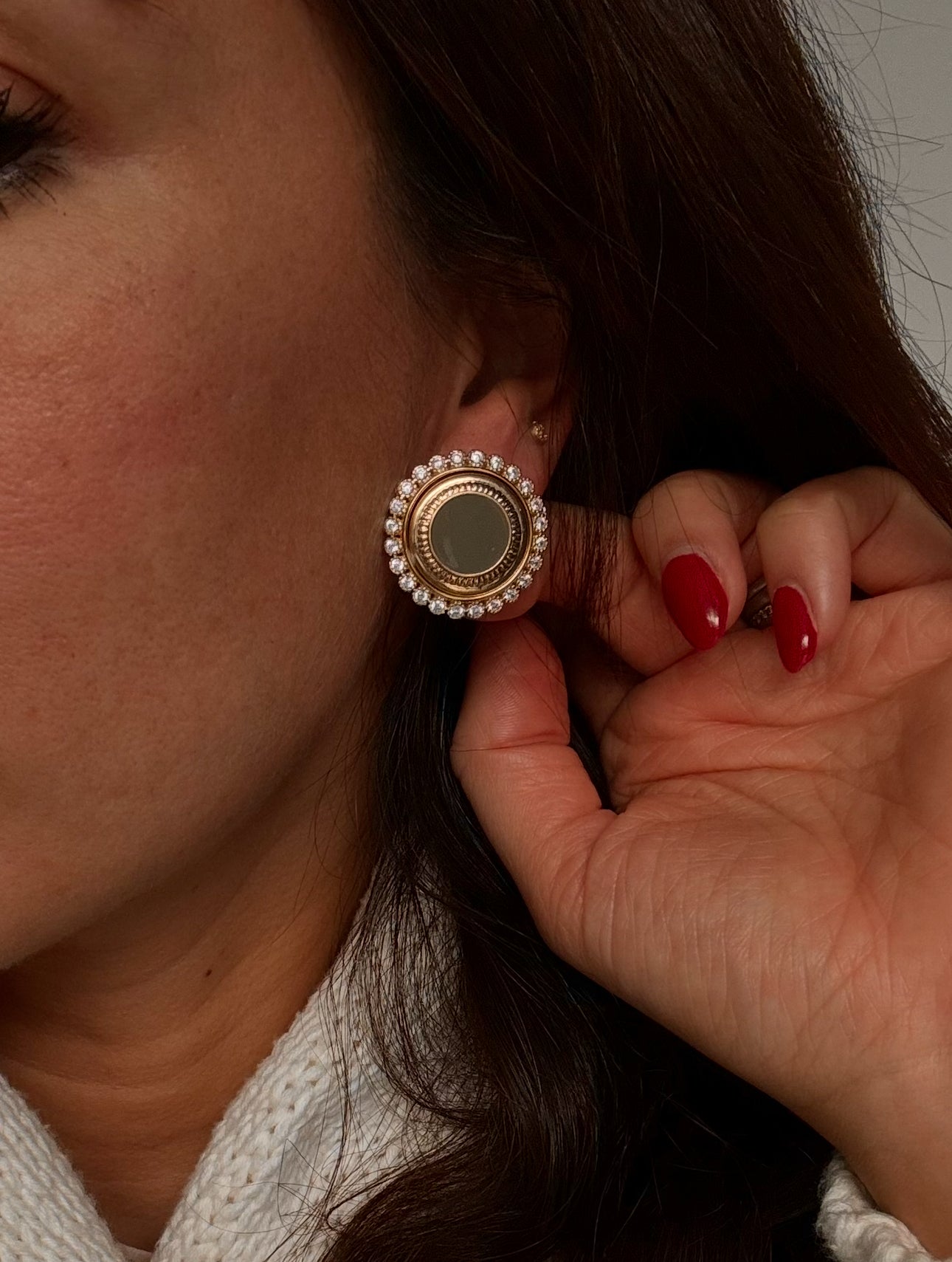 Their muted green hue and crystal studded halo makes this pair a true forever pair of earrings with a modern-elegant style.