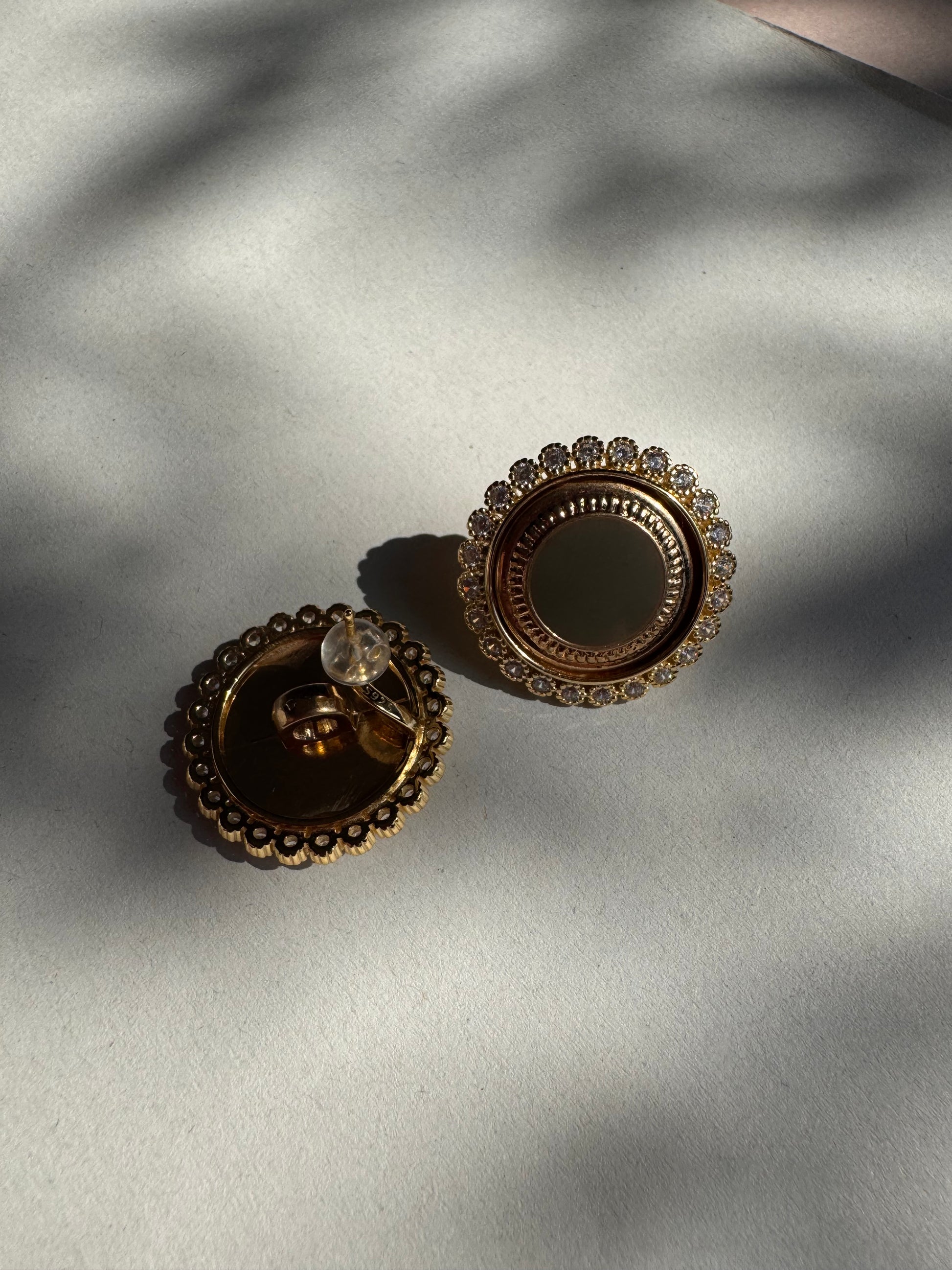 Inspired by their name sake, one of our favourite Creators and a true gardening queen, these earrings form part of our Button Collective - truly Ltd Edition and one of a kind pieces, each pair is hand crafted using a Demi-fine base (925 Sterling Silver & Gold Plated) and set with a carefully sourced, antique button. Any inclusions or natural marking evidence the buttons previous life on a garment or accessory - truly one off.