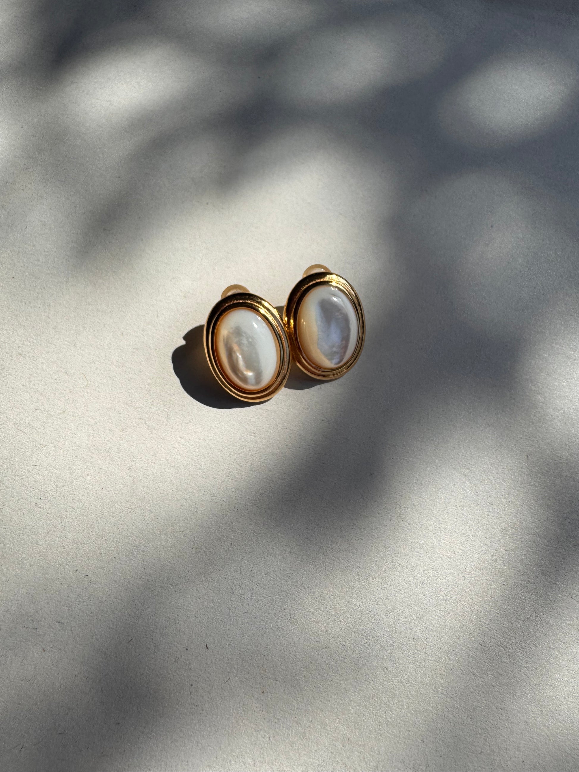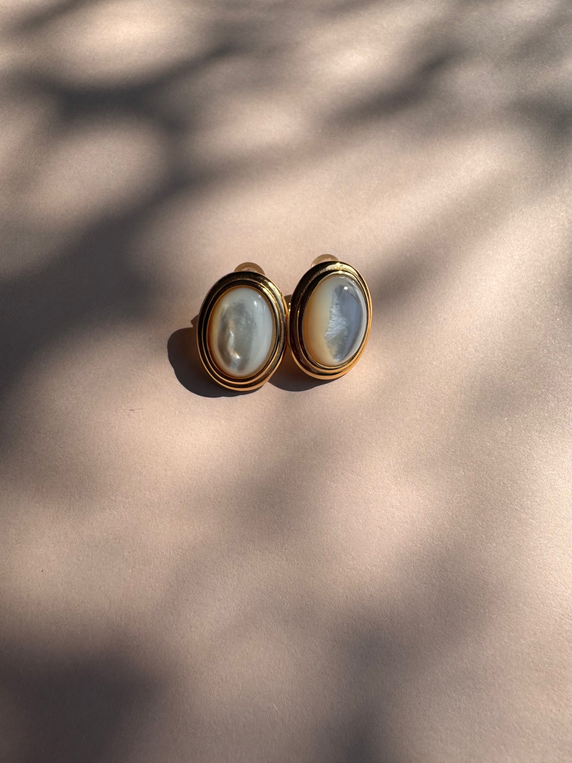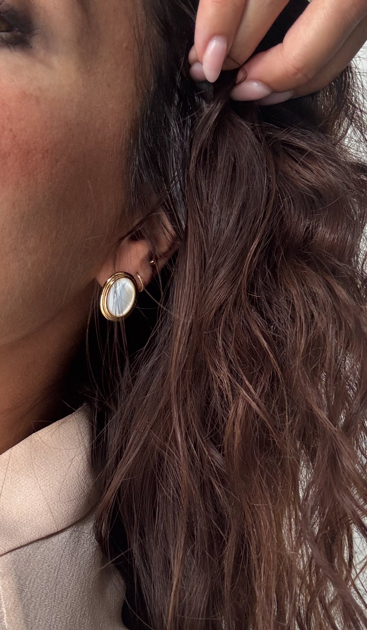 M is for Margot. Inspired by a number of women who share the initial M and are our Muses, these beautiful earrings are crafted in 925 Sterling Silver, high-shine Gold Plated and set with Mother of Pearl.